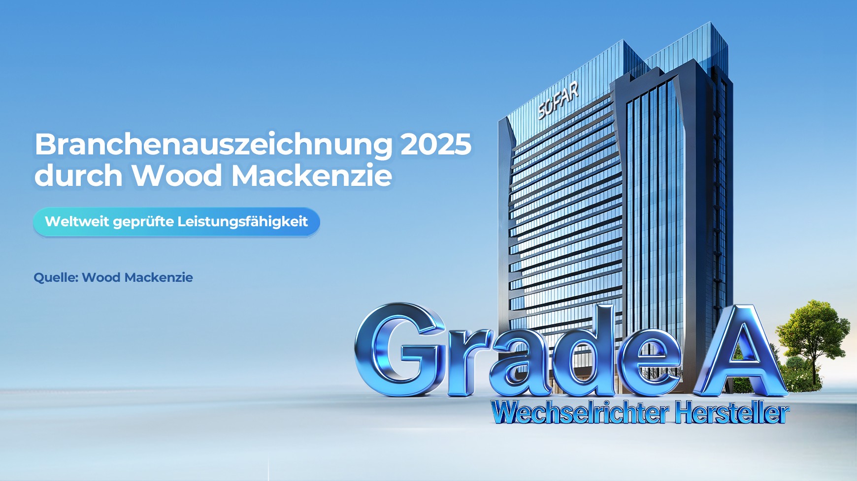 SOFAR ist ein Anbieter von PV- und Energiespeicherlösungen für alle Szenarien und hat sich zum Ziel gesetzt Vorreiter für digitale Energielösungen zu werden. SOFAR unterstützt den Übergang zu erneuerbaren Energien durch ein umfassendes Portfolio mit PV-Wechselrichtern von 1 kW bis 350 kW, Hybrid-Wechselrichtern von 3 kW bis 20 kW, Batteriespeichersysteme, ESS-Lösungen für C&I und Versorgungsunternehmen, Mikro-Wechselrichter-Systeme und SOFAR Monitor für private, gewerbliche und industrielle Anwendungen sowie für Energieversorger.